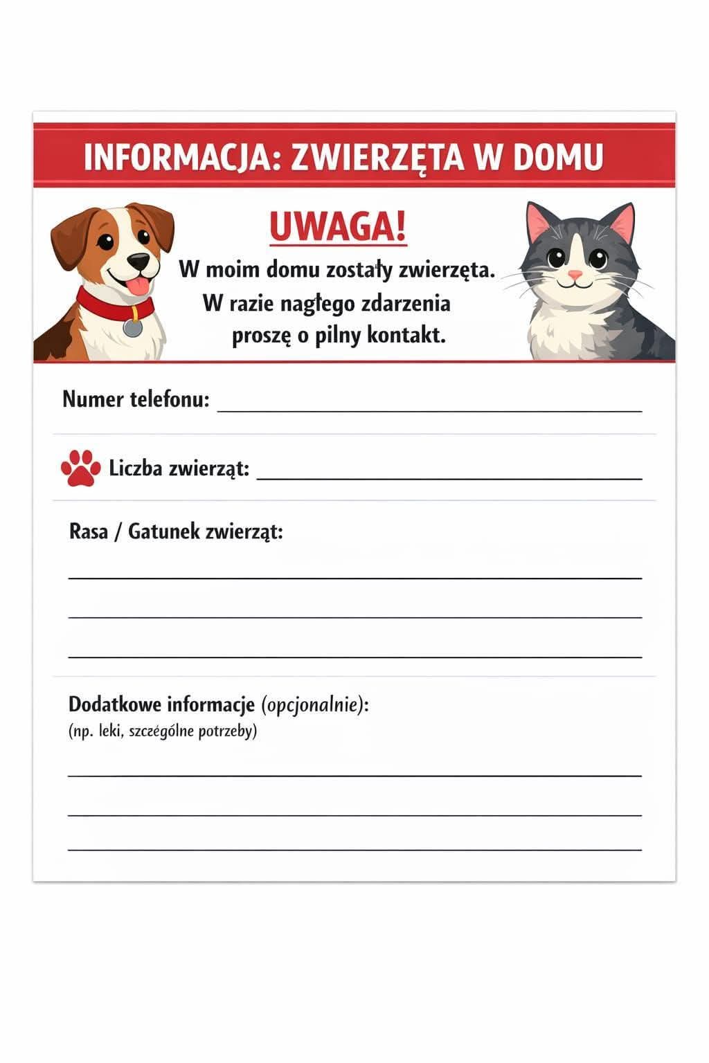 W nagłym wypadku służby dowiedzą się, że w Twoim domu czeka zwierzak wymagający opieki 🐾